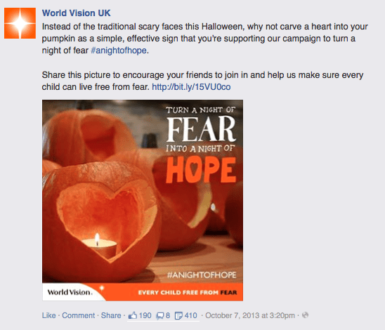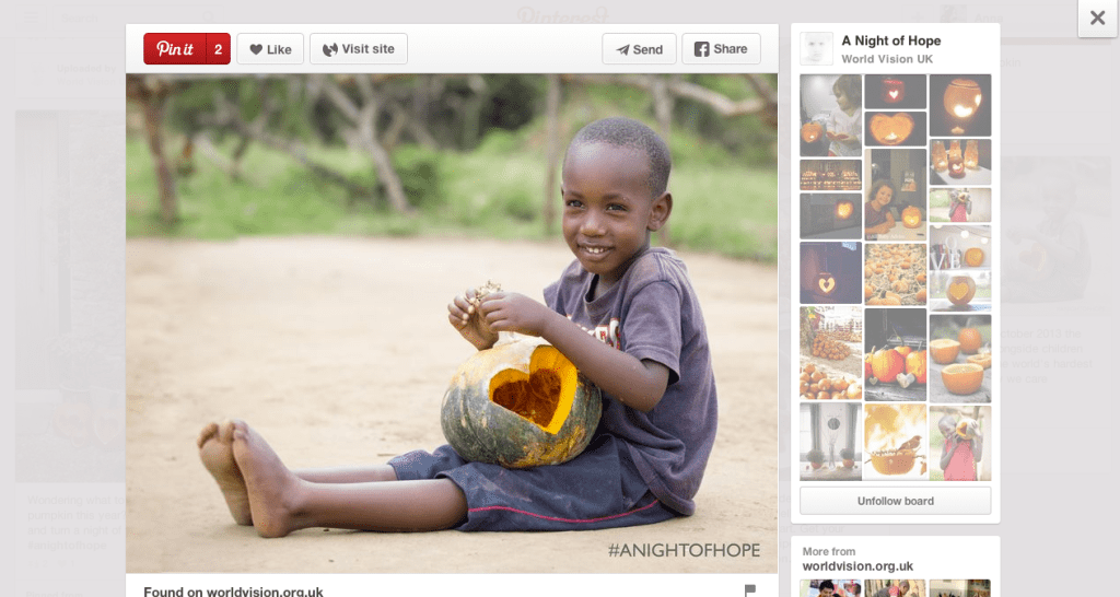 So this Halloween, turn a symbol of fear into a lantern of hope, carve a heart into your pumpkin and show the world you’re taking a stand for children around the world living in fear.”